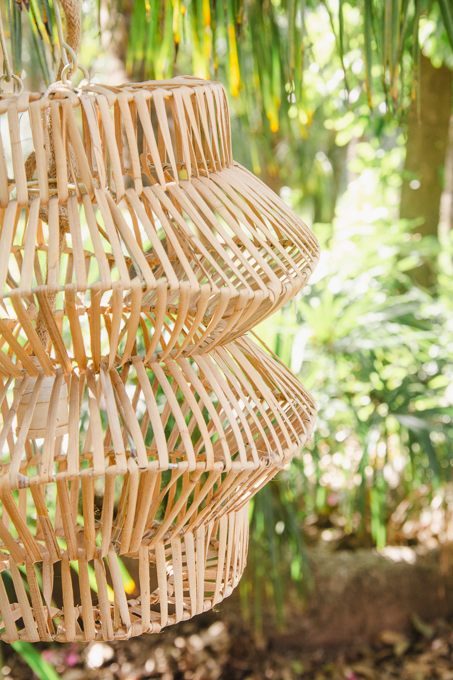 > Lámpara colgante de fibras naturales.